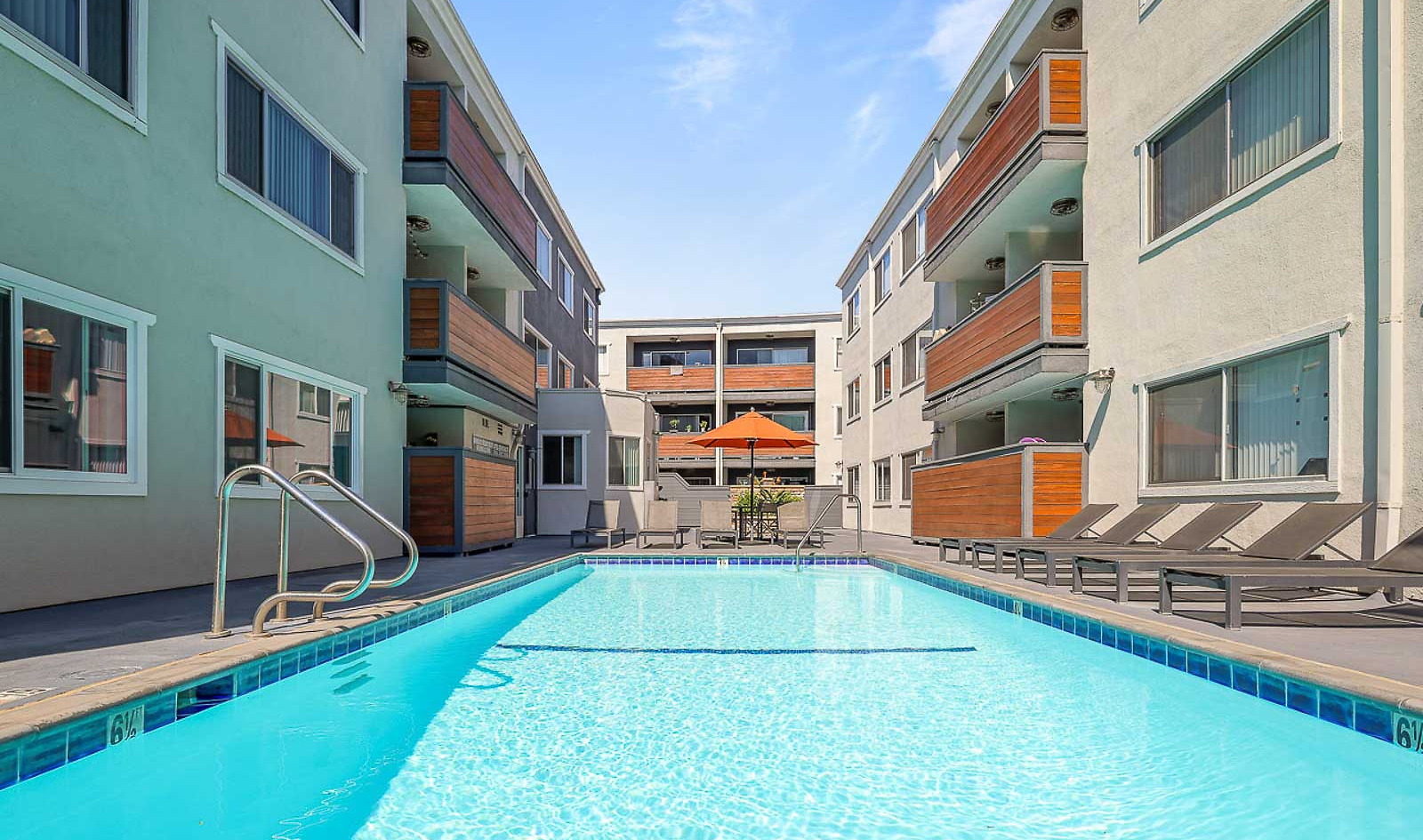 - Swimming pool with umbrellas and lounge seating