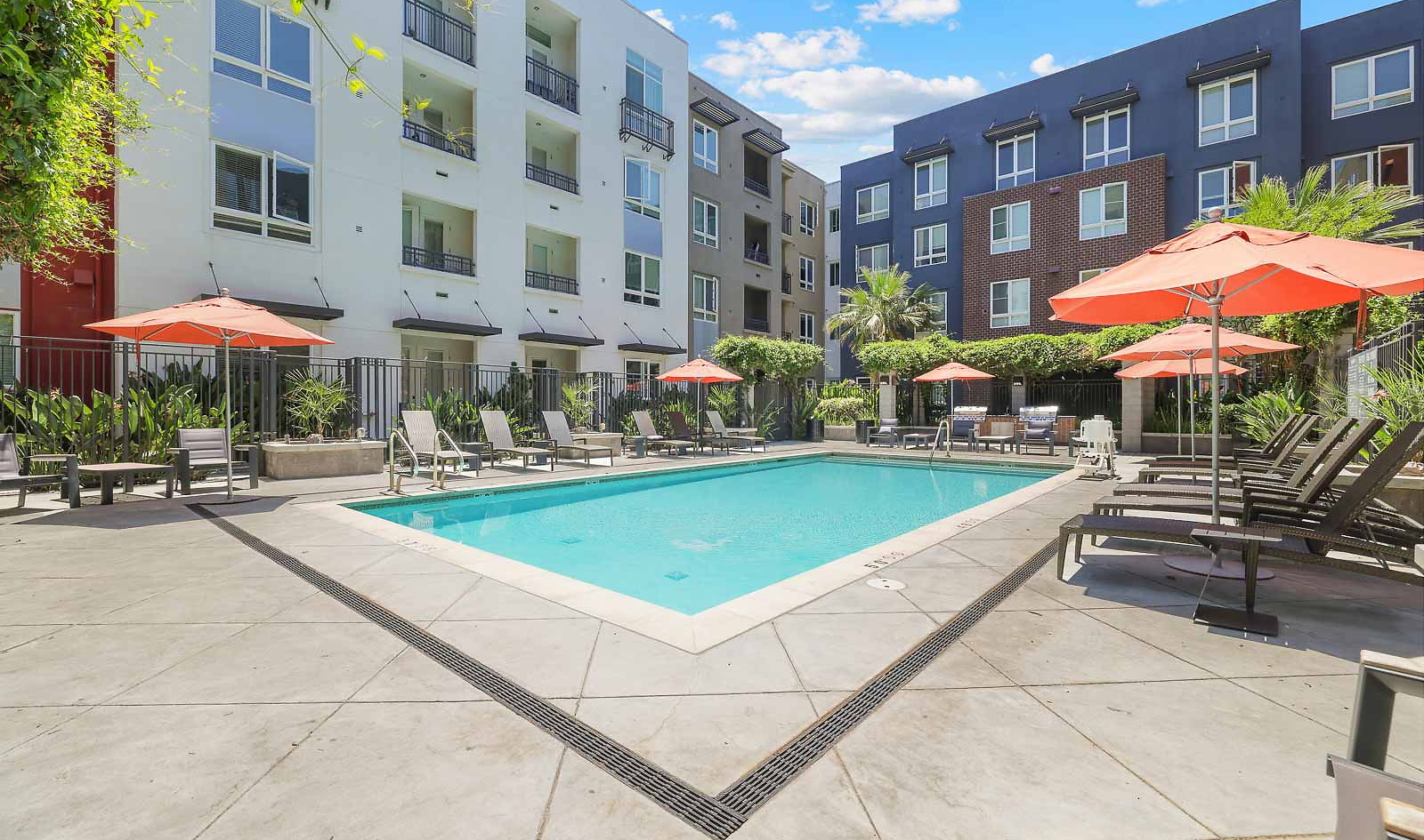 - Resort-style pool and spa with lounge seating